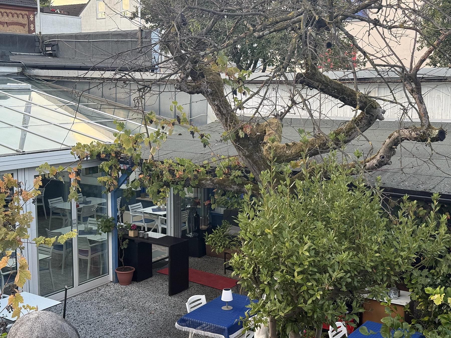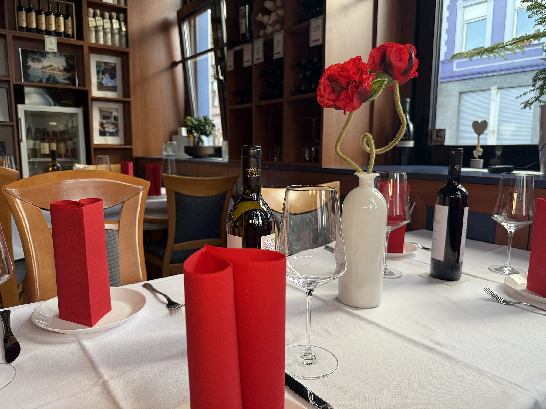 Ein besonderes Highlight ist unsere große Open-Air-Terrasse, die im Sommer zum entspannten Genießen unter freiem Himmel einlädt. Im Winter sorgt unser stilvoller Wintergarten für ein warmes, gemütliches Ambiente mit Blick ins Grüne – perfekt für romantische Abende oder gesellige Runden mit Freunden und Familie.